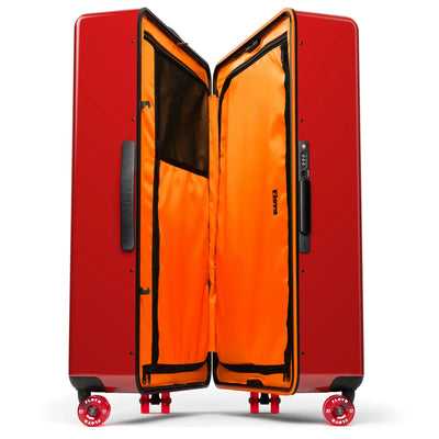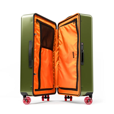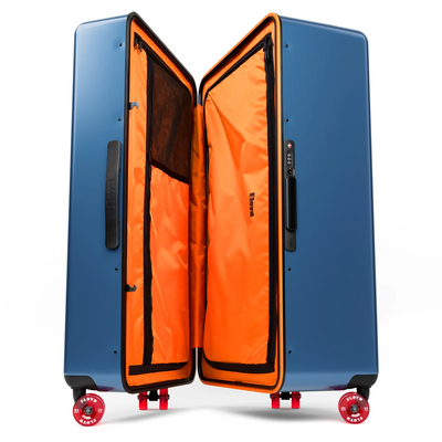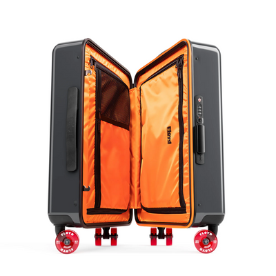 Der Floyd Check-In ist der beste Reisebegleiter, den man sich wünschen kann. Er kann nicht nur viel aufnehmen, sondern auch noch mehr einpacken. Ersteres liegt an der extrem robusten Außenschale, letzteres an den geräumigen Innenfächern. Und dass Dein Floyd-Koffer den Geist der kalifornischen 70er Jahre atmet, erkennst Du sowohl an seinem auffälligen orangefarbenen Innenleben als auch an den einzigartigen Skateboard-Rollen.