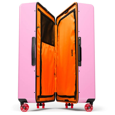 Der Urlaubsspaß beginnt, sobald Du Deinen Floyd Trunk aus dem Duster holst. Ob in Sugar Pink oder in einer der anderen unvergleichlichen Farboptionen, seine schlanke Silhouette ist immer eine pure Augenweide. Wenn Du sämtliche Reiseutensilien in den voluminösen Innenfächern verstaut und mit den magnetischen Verschluss die Gurte fixiert hast, kann's losgehen. Und genau dann wird Dir auffallen, dass die leichtgängigen Skateboard-Rollen mehr sind als nur ein cooles Designelement.