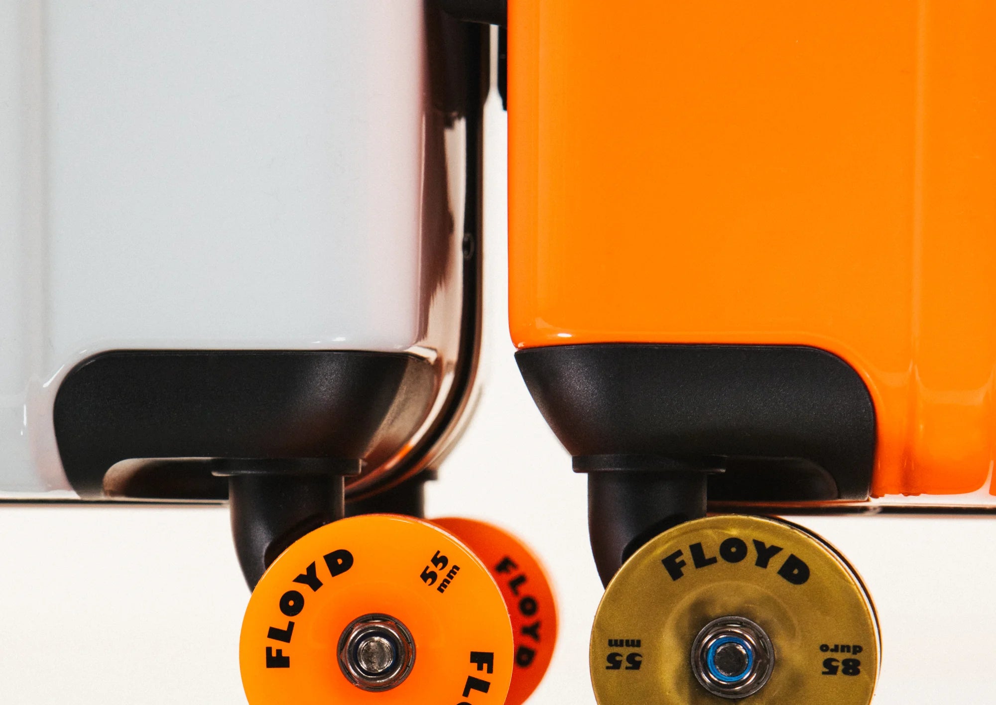 Inspiriert von der kalifornischen Subkultur der 70er, kreiert für den mobilen Lebensstil von heute. Die DNA der Floyd Travel Cases erkennst Du auf Anhieb an den acht markanten Skateboard-Rollen aus 85 Duro Polyurethan. Sie sind in vielen Farben verfügbar und mühelos austauschbar. Und dank der zwei ABEC-7-Kugellager pro Rad gleitet Dein Floyd leise und sanft in alle Himmelsrichtungen.